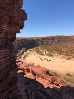 After 2 nights at Hutt River I was up early the next day to head off to Kalbarri. Stopped at all the cliffs on the way in to town – there are about half a dozen of them or so – and then grocery shopping and relaxing on the river foreshore before tackling the gorges. This is best done early morning and as I was there early afternoon it was very hot – 40deg – and full of flies. Definitely need a fly net and plenty of water. But Wow! Well worth the effort to see each of the lookouts and if feeling energetic, to do one or two of the walk trails. They are currently building a Sky Walk near Natures Window. This will jut out some 25 metres into the gorge below. No doubt this will be a major drawcard, at an additional cost, but what an experience. It should be open before Christmas 2019.
