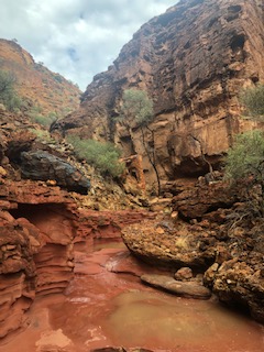 I was back at camp at 10am after a 7am start. It was a beautiful day until…….until it started raining again at lunchtime. A couple of other campers who left this morning returned and came over to tell me that they had run into the ranger and them being in a small car would not be able to get across the flooding river crossings. The ranger had told them that any other campers would need to leave now or possibly be stuck for up to a week. With that advice I decided to up and go then. I had already decided on doing the remaining 2 walks that I wanted to do the following morning and then head out but this changed my mind quickly. I got back to the Mt Augustus-Gascoyne Junction road without any trouble. A bit boggy in parts but no real problem for me until I reached the Lyons River crossing (see photo). I parked and walked across. It wasn’t too deep for me but it was flowing fast enough for me to err on the side of caution and it looks like I will be stuck here for a few days. It is what it is and I will suck it up but am a little annoyed at the information I had received at the Carnarvon Visitors Centre the day I left to come out here. I was advised that there were no road issues and there was no substantial inclement weather forecast. Mmmm. Whilst I check weather conditions on my phone through BOM, the area, which is a large encompassing area said scattered thunderstorms predicted. Once you get into the park there is no phone reception whatsoever so there are no updates possible.