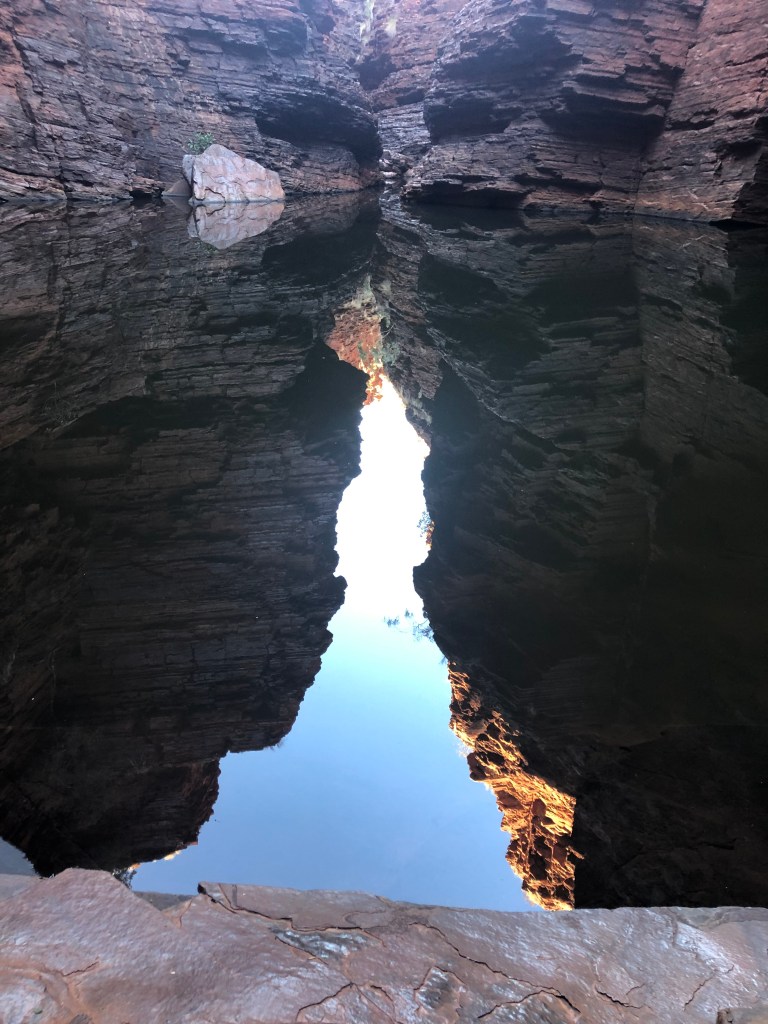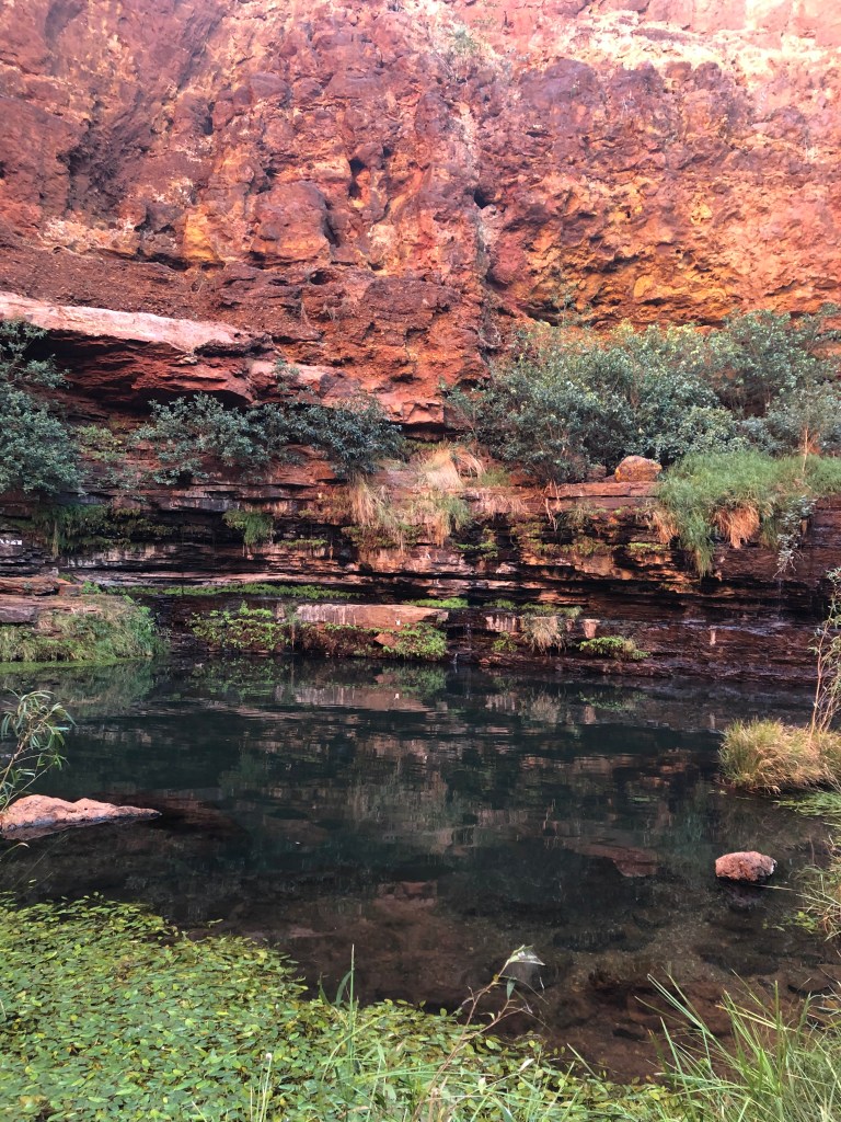 Then it was a couple of rest areas on the way to Tom Price and Karijini National Park. I hadn’t put Karijini on my bucket list as I hadn’t planned on going inland on this section of the trip but after seeing Kennedy Range I decided to change tack. Being school holidays it was pretty busy but WOW what an amazing experience. I had a few days in the area and everything they say about Karijini is true and more. It is truly a spectacular place to visit. I walked all the gorges that I was able to access and a couple that I didn’t think I would be capable of. Each walk is different and challenging but the reward takes your breath away at times. My favourite at Dales Gorge was Fern Pool where you can swim right up to and under a waterfall. Fortescue Falls was another great swimming opportunity. The water was very cool which was a welcome relief after hiking the length of the gorge floor. At Weano Gorge there are a couple of challenging extensions, one to Handrail Pool and the other to Kermits Pool. Kermits Pool in particular was special. The colours from the suns reflection in the early morning (and I imagine in the late afternoon as well) across the differing shades of rock just bring the gorges alive and it is natural beauty. I wasn’t real good at English at school but I am sure the word gorgeous must be derived from the word gorge.