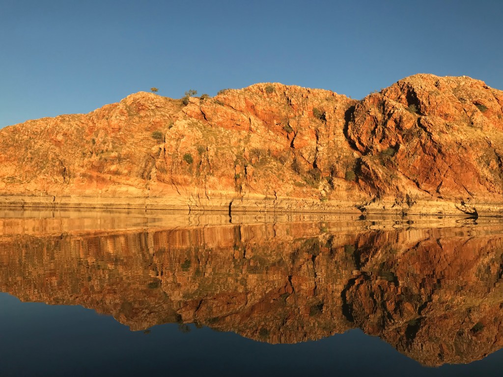 We headed around the cliffs on the lake to see Rock Wallaby’s coming down to look at us and saw and fed a multitude of fish. The birdlife on the lake is a paradise for bird watchers with literally hundreds of different varieties. We were able to get up pretty close to some and of course there are plenty of crocs to see as well. We stopped at Montague Island to fossick for Zebra Rock and as the sun faded we stopped for a swim against the backdrop of magnificent cliffs and a setting sun to the west. Whilst in the water we enjoyed an ice cold beer (or Champaign if you prefer) and nibbles from a floating upturned esky lid. Just a magic end to a magnificent day. We cruised back to the jetty as the sun cast its last shadows and were back at our Caravan Park just after 7pm. The best value cruise I have ever been on and certainly a highlight of my 5 months on the road.
