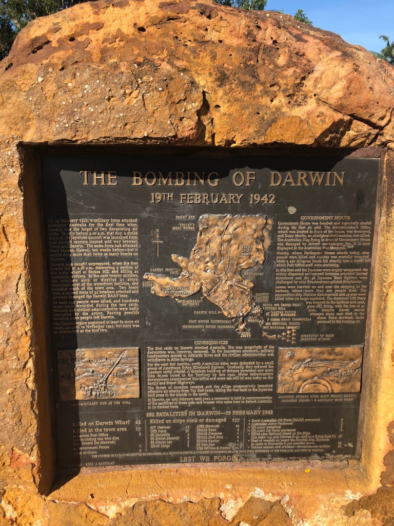 I found my way up to Bicentennial Park which is adjacent to the city centre overlooking Darwin Harbour. It reminded me of Kings Park in Perth in as much as it is on the doorstep of the city and is very much a peoples park with numerous joggers and families enjoying the sunshine. It also houses a number of important dedications to our Servicemen and Women. I then headed back into town and wandered up and down the 3 main streets of Darwin CBD, Mitchell, Smith (including Mall) and Cavanagh Streets.