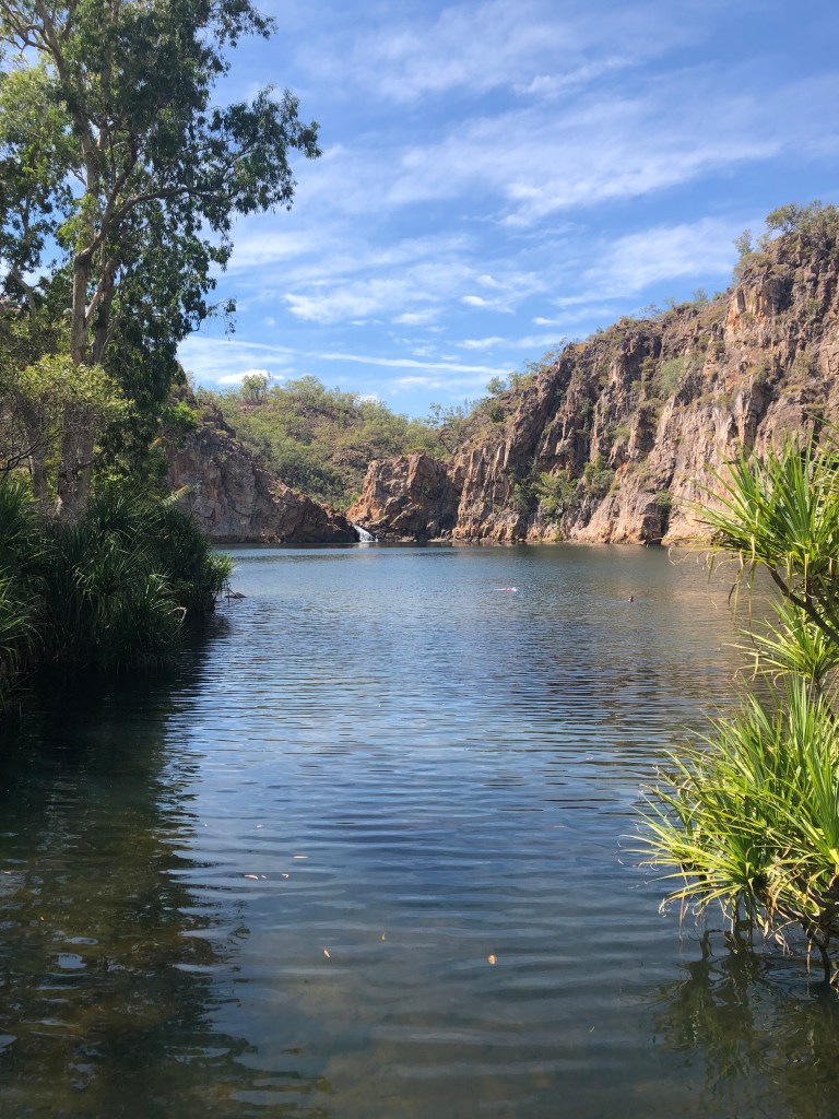 I booked Rhonda in for her 6 month service in Katherine so spent a couple of nights at Edith Falls. Edith Falls is one of those must visit places. I did the 8.4km walk out to Sweetwater where you can swim in the rock pool and there are other stunning swimming options on the return trip. There is a huge big pool just off from the carpark and it is a good 150 metre swim across to the waterfall. The Kiosk here sells Buffalo Burgers for $15 which I can recommend. Really enjoyed my time at Edith Falls.