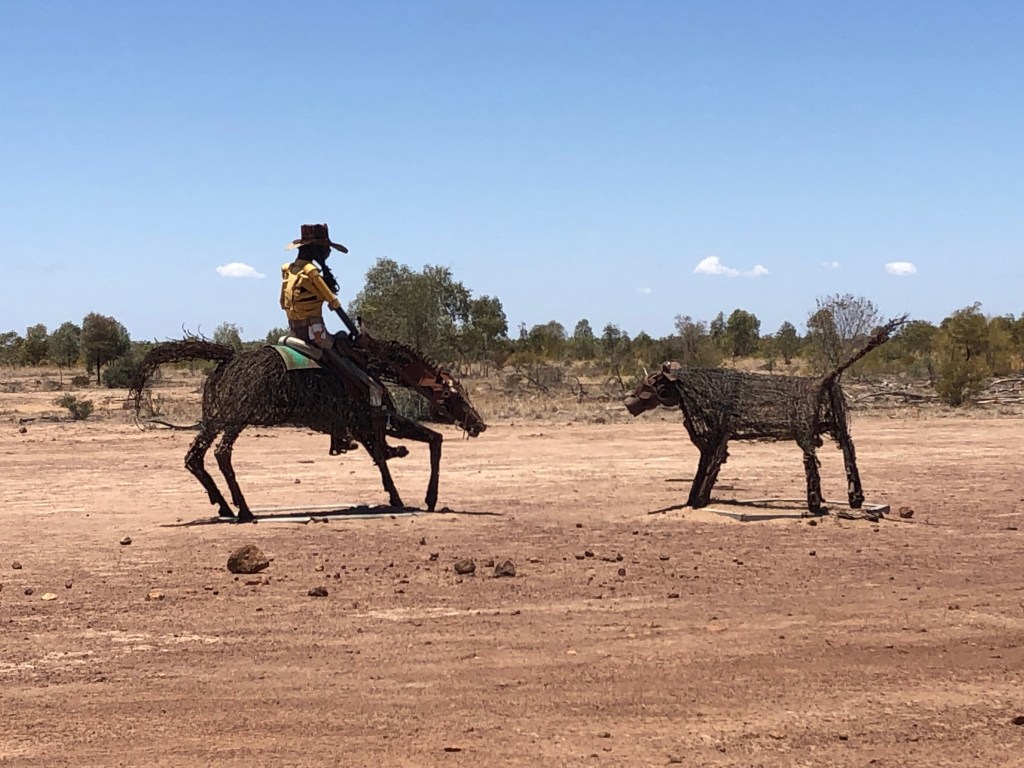 A white bull statue in the main street is an acknowledgement to the ultimate downfall of the infamous Harry Readford. Referred to as Captain Starlight, Harry stole a large mob of cattle and a white bull from Bowen Downs Station near Aramac and drove the mob down into South Australia through some of the toughest country in Australia. Enroute the white bull was recognized and he was subsequently caught and charged but never convicted. Years later he was convicted on other cattle stealing charges and goaled for 18 months. He was a renowned drover and was responsible for the first mob of cattle taken to Brunette Downs on the Barkly Tableland in the Northern Territory. He drowned in 1901 after trying to cross a flooded creek.