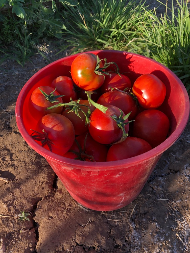 Back to the house to wash out the milk bottle (which is actually a 2 litre fruit juice plastic bottle with a teat mounted on top), move more sprinklers around, give the 2 dashie mums some meat and then go over and feed Alfie the Pig either pellets or the contents of the scrap bucket. There are a couple of younger dogs that are kept separate because of their lack of social skills that I then let out and take for a walk to expend some energy. The dogs and mine! There are 2 other house dashies that trot along as well. I then usually pick the produce from the garden. Copious amounts of tomatoes, most of which I have frozen for the mum and dad. There is also carrots, spinach, broccoli, capsicum and zucchini. Then it is time for a cuppa and some breakfast.