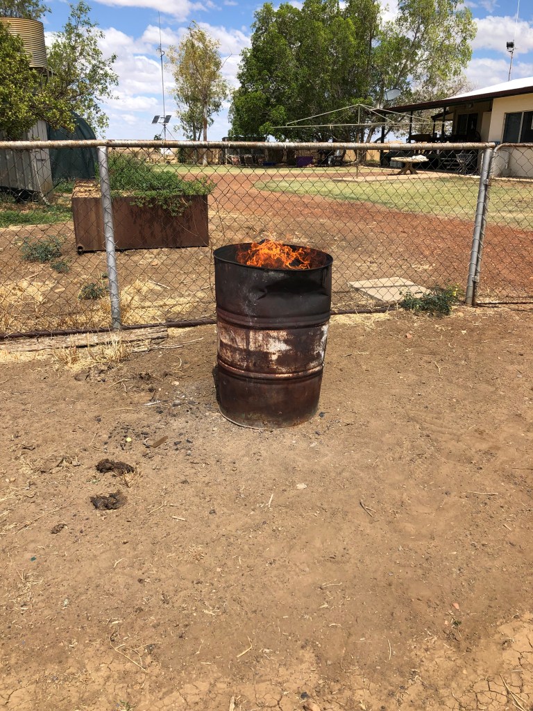 All rubbish must be disposed of onsite so what can be recycled or repurposed is and what can be burnt is put into a 44 gallon drum and burnt. Obviously with the drought conditions, burning off must be done on days of no or little wind and it needed a constant eye and a hose at hand to ensure no accidents happened.