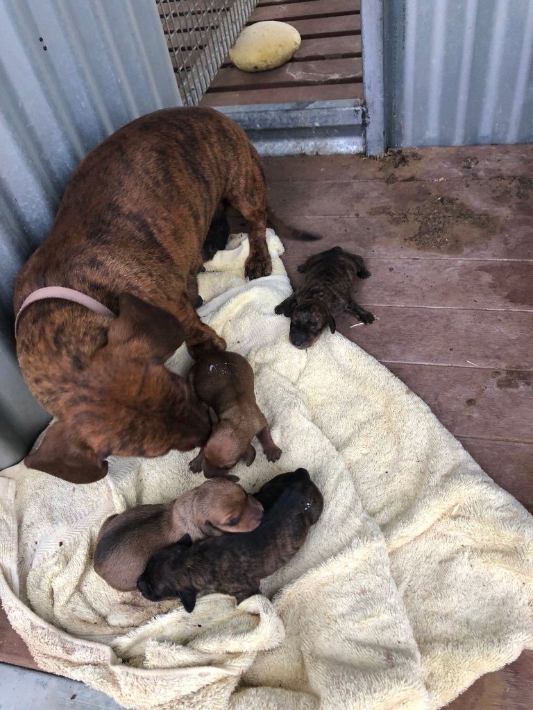 The day I arrived a cow had an awkward birth and for the duration of my stay I had to bottle feed the calf twice a day. Two days later, the day the mum and dad left, one of the dashie’s had a litter of 6 pups. The following week another bitch had a litter of 4. Sadly 2 of the puppies from the first litter died in the first couple of days.