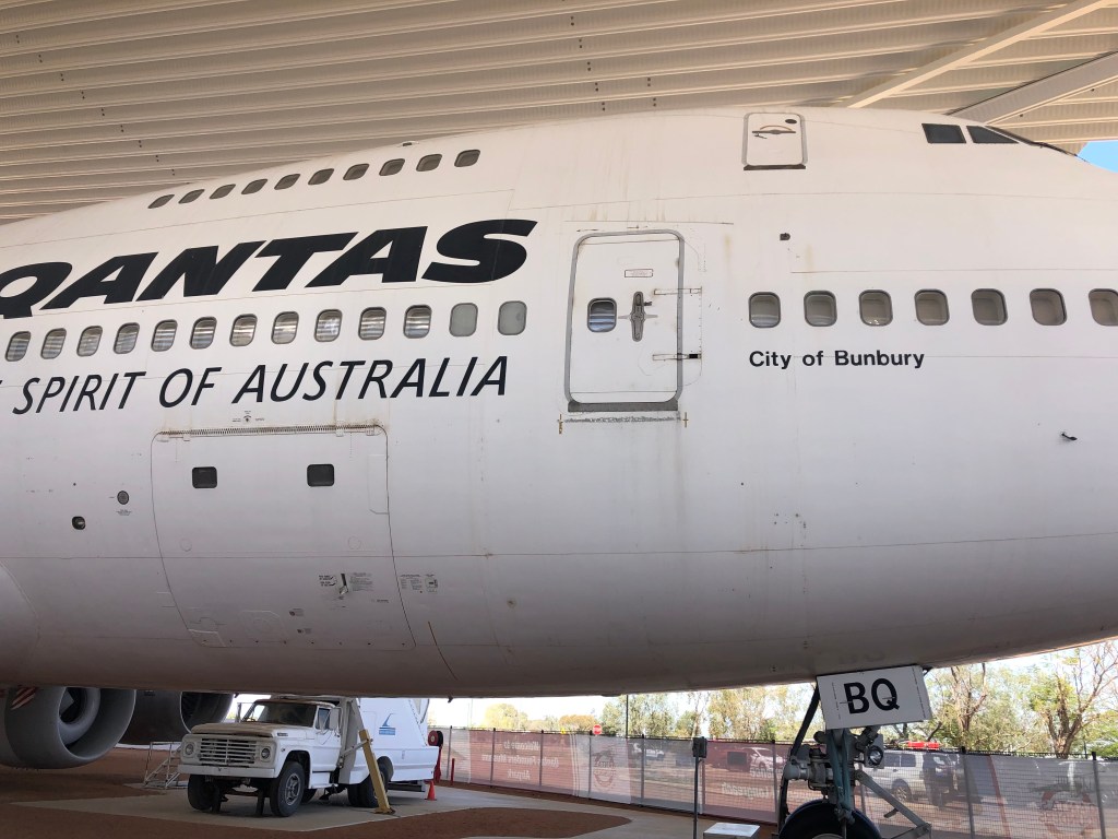 The Museum includes a walk through the original Qantas hanger, old planes, artifacts and information as well as videos. The whole complex sits alongside the Longreach runway. The Airpark Tour is a guided tour around 4 aricraft including the “City of Bunbury” 747 airplane that was flown in on its last flight to be the centerpiece of the aircraft dispays. Our tour guide Shannon did an excellent job of giving all the relevant facts and figures as well as interesting stories about the planes and some of the passengers.
