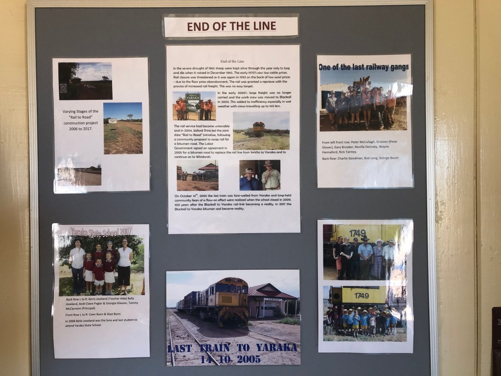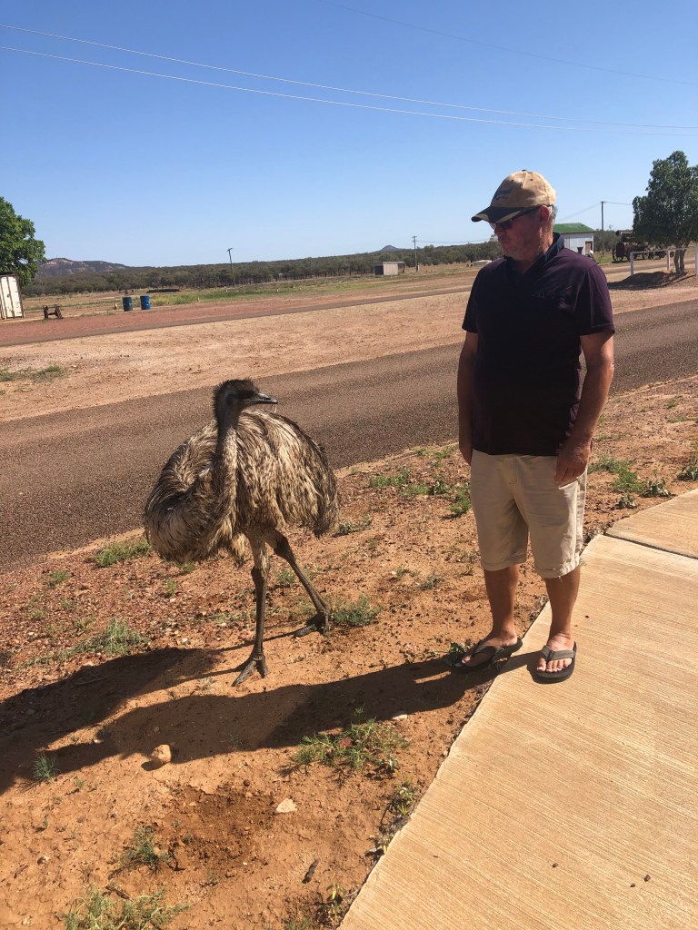 Yaraka – This was one of those little gems of places that you stumble across every now and then. The town was officially founded when the rail line opened up in 1917. It was so named after the indigenous name for the white spear grass which grows in the district. The area was part of the giant Milo sheep station located on the south side of the Yang Yang Ranges. Mount Slowcombe is situated a short drive away and the Yaraka Hotel provides a mini bus tour from the hotel to watch the sunset each evening. It is free, albeit a donation to the RFDS, and you congregate in the bar for a 5.30pm departure, getting back by 7.30pm. They supply buckets of ice to keep your takeaway beers cold and you can preorder dinner so it is ready on your return. Mount Slowcombe gives a panoramic view of the countryside and is a special place to spend the days end. There is also a lookout on the eastern side with 2 flag poles where they hold the annual Anzac dawn service. There were only 6 of us on the tour and we had a running commentary from the publican giving a history of the area and his passion about the continuation of sheep farming. The hotel had a couple of relief publicans in preparation for the owners heading off for a break and they were a livewire couple who made the night so enjoyable. Good old country hospitality to the fore. They even let me watch the AFL on TV when the locals preferred the Rugby League. There were a couple of resident emus who patrol the streets of Yaraka and the pub has to have a chain across the entry door to keep them from eating customers food or taking a sip of your beer when you turn your head. Most intriguing. The old Railway Station houses some memorabilia from yesteryear and is worth looking at.