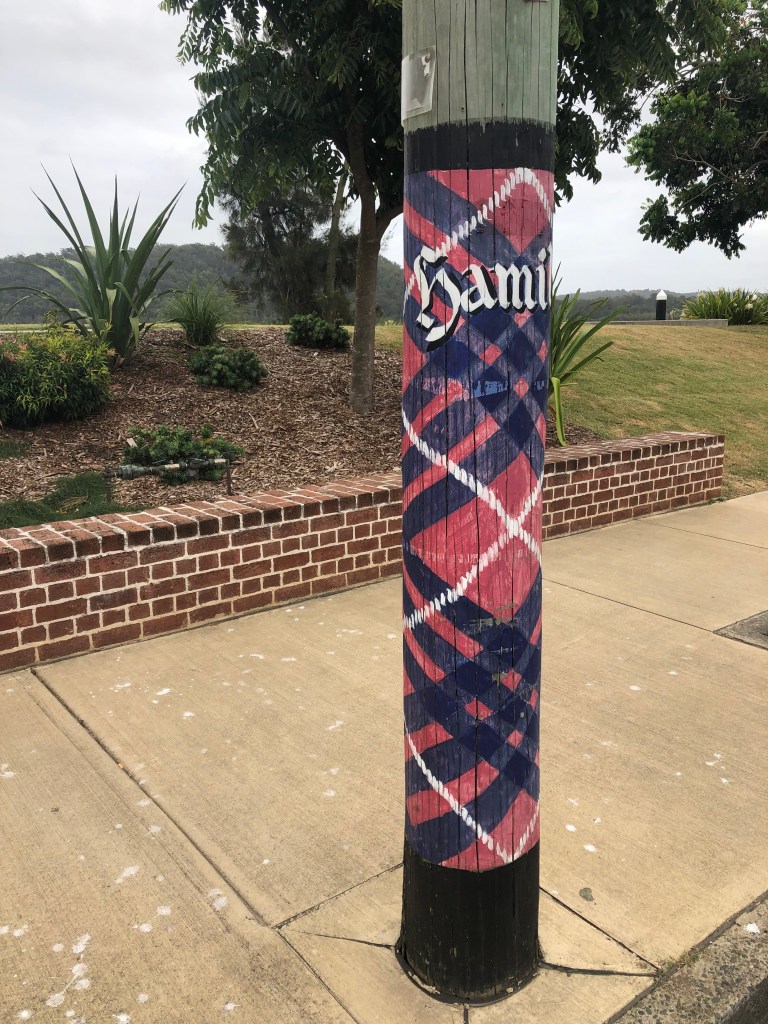 I called into the villages of Evans Head, Woody Head, Iluka and Angowrie before staying overnight at the Maclean Showground on the banks of the Clarence River. Maclean is a pretty little town with a narrow winding road that meanders between shops in the business centre. It proudly claims to be “The Scottish Town in Australia” and capitalizes on the large number of early settlers in the valley that arrived from Scotland. Every telegraph pole in the town has been painted a different tartan at the base and the town also hosts the Maclean Highland Gathering over the Easter weekend.