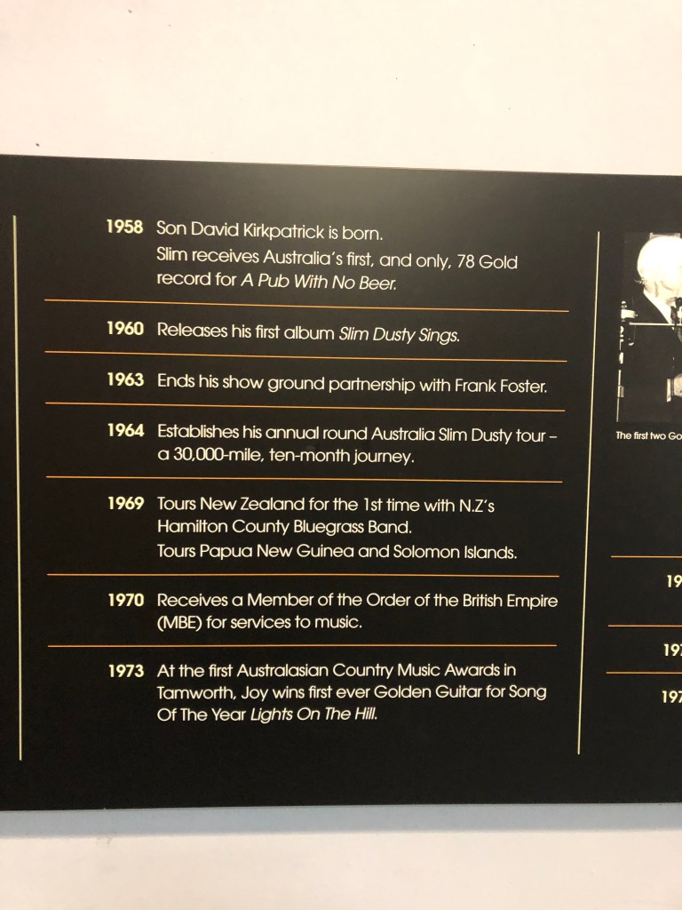 I have long been a fan of country music and there is no one that personifies country music in Australia than Slim Dusty. He is a true legend. Covid has meant the Centre has been closed for a long time and I was lucky that it had only just reopened the day before my visit. How lucky was that?