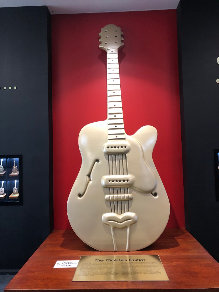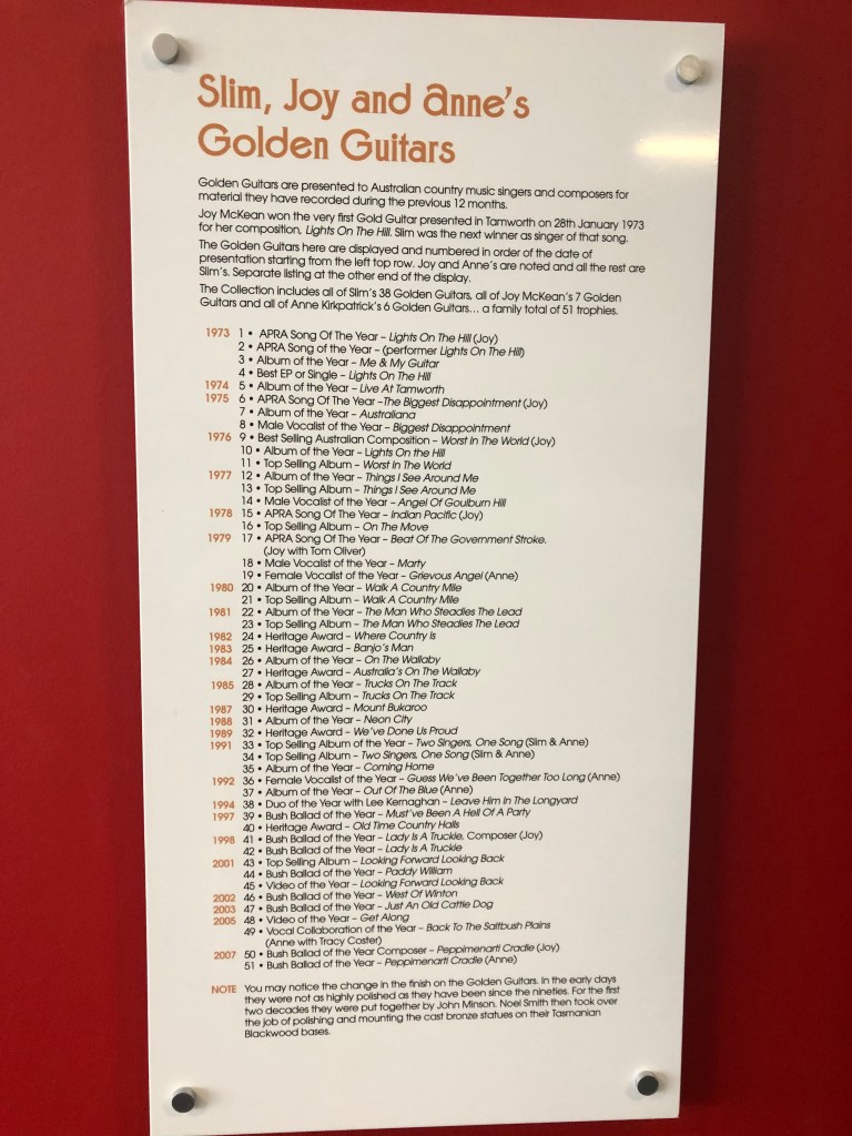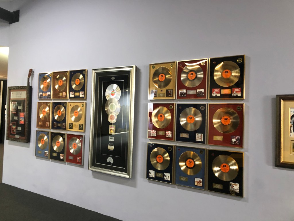 All Slim’s golden guitars are on display as well as his gold and platinum records. Even the car and caravan he and wife Joy toured Australia in bringing music to the people was on display.
