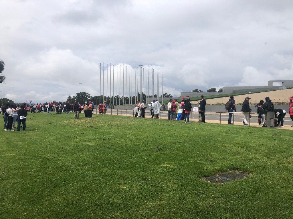 If you are ever in our National Capital then I think it is a must do for the experience. I walked to and from Parlimemt from Civic. Walking up along the footpath from the Old Parlimemt to the New gives you a sense of how big “the lawn” area really is. To be honest the building doesn’t look all that impressive from the outside but it is opulent and striking once you get inside. There was a protest group on the lawn area. Not sure what they were protesting but they were certainly exercising their democratic right.