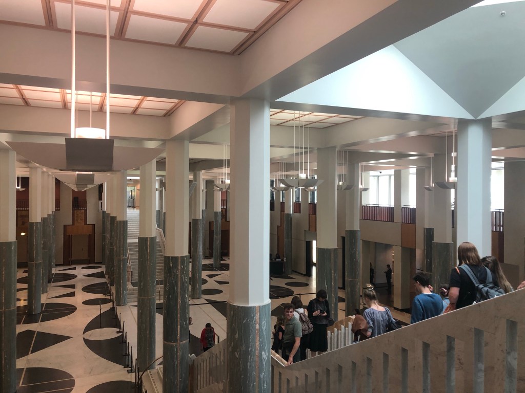 The tour I booked on was the Question Time Tour and it went for one and a half hours. 1.30 to 3pm. There was a group of 20. Most were young females from a Government Department and only about 6 of us were tourists. Michael was our guide, he was Danish, been working at Parlimemt House for 11 years, had a thick accent and was a bit of a character. We had a bit of a history lesson and learnt interesting facts like there are 4,500 rooms at the new Parlimemt House and it took 7 years to build at a then cost of $1.1b. We were escorted around the building and then we had about 10 minutes sitting in the gallery of the Senate and about 25 minutes in the House of Representatives. Both were during Question Time.