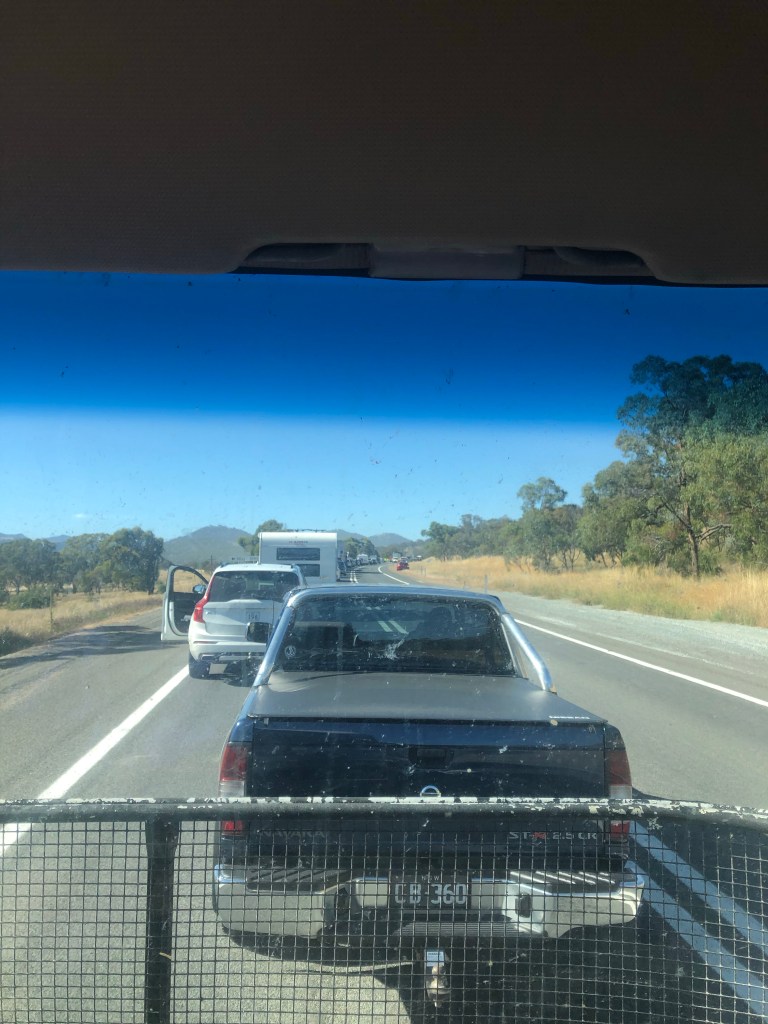 I headed off from Queanbeyan about 8am and only just got out of the ACT on the Cooma road when traffic came to a standstill. There had been a fatal accident a little earlier and the road was blocked in both directions. Trucks, Buses and caravans were unable to get through but after a 2 hour wait smaller vehicles were allowed through on a side dirt road. The traffic controller wasn’t going to let me through to start with but after talking on the 2way to his boss I was allowed through as well.