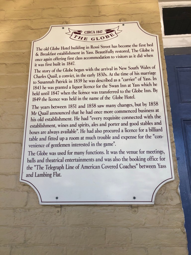 Yass is a very historic town and I wanted to visit Cooma House but they only open on Sundays now. This is starting to become a common occurrence with museums and the like either only open at very limited times or not at all. Most of these places are run by volunteers and with Covid regulations and restrictions volunteers are getting harder to find and even harder to keep safe.