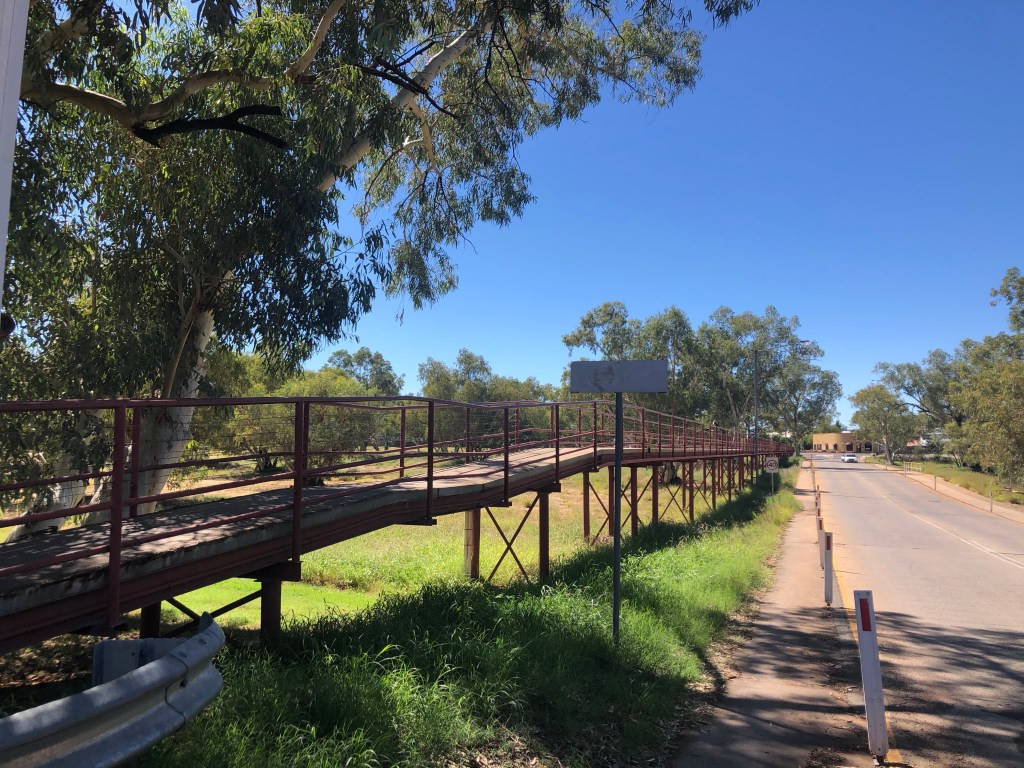 Alice was a bit of a surprise package. A lot of media negativity and also comments by some travellers made me think it was almost worth zooming through. An all together truth was far from that. Firstly I anticipated a flat barren country surrounding the town. Not so. Alice Springs is surrounding by imposing hills and rock formations. The town itself is very attractive. Grassed verges and a streetscape that defies the arid climate. The locals were friendly enough and it was easy to walk around the streets. There was a great long bay, all day parking area on the edge of the Todd River which was totally dry.
