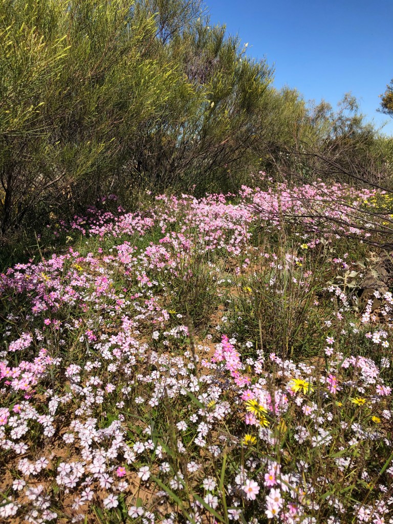 The wild flowers actually started just south of Carnarvon and were quite prolific for nearly 100 km. 10km out of Pindar was the best place for the famous but elusive wreath flowers. They were absolutely amazing.