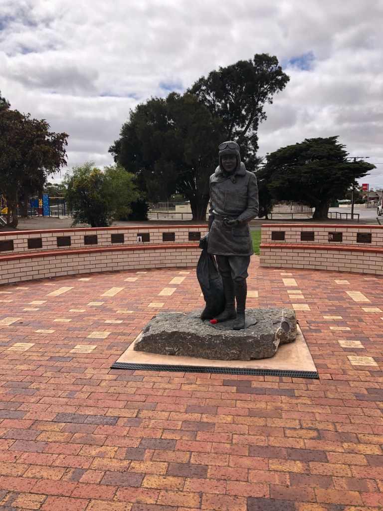Next stop was Port Victoria Before heading back inland to Minlaton I found a statue of Harry Butler who was a local legend. Born of farming stock in 1889 he dreamed of flying. He served in WW1 in the Royal Flying corps and in 1919 he became the first to fly across the Gulf to Yorke Peninsula, carrying an 18kg mailbag, and thus becoming the first air mail flight to the Peninsula.