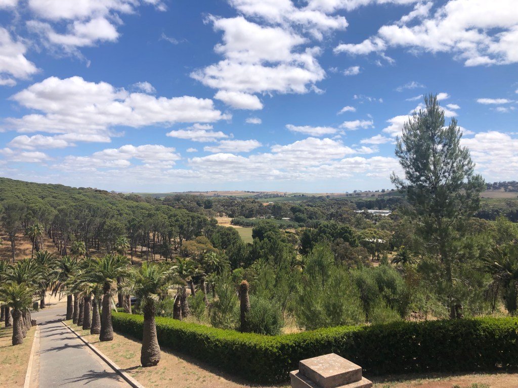 After getting my awning replaced in Port Wakefield we headed up to the Barossa Valley for a couple of days. Drove up through Gawler and past Cockatoo Valley to Jacobs Creek Winery. This was the only winery we did a wine tasting at. I’m not a wine drinker but had a taste. A couple of wines were palatable and we brought one bottle that is only available through their cellar door. We then headed into Tanunda for lunch and a look around and to get some supplies. Enroute to our overnight stop at Greenock we drove past the vast fields of grapevines that make up the Seppeltsfield holdings. On part of their property is a family Mausoleum high on a hill. It was sort of an eerie place, even in the daylight.