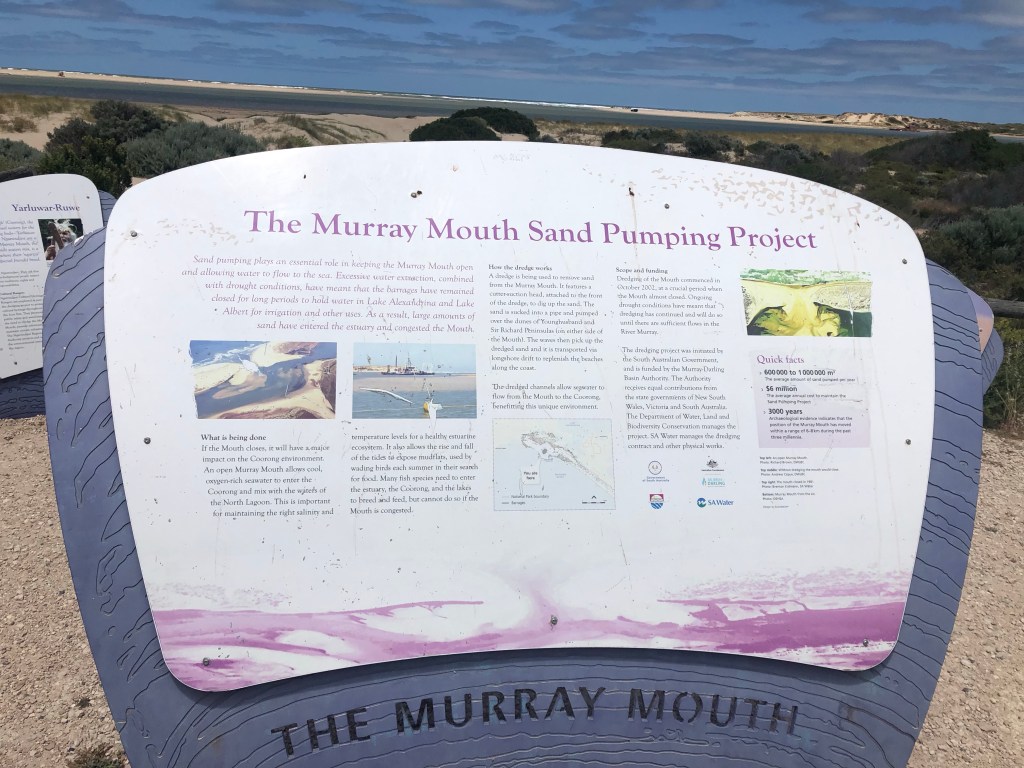 We drove around Hindmarsh Island and out to the point where the Murray hits the ocean. There are 3 sand dredges operating constantly to clear the buildup of sand that threatens to end the Murray’s run before it can reach the open sea. We stopped overnight at Port Elliot Showgrounds. The next morning we had a look around Port Elliot before heading back to Goolwa to have a good look around this lovely town.