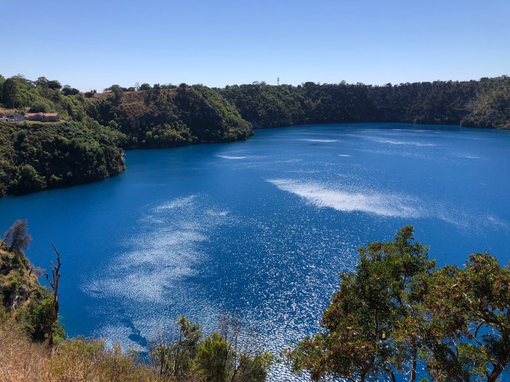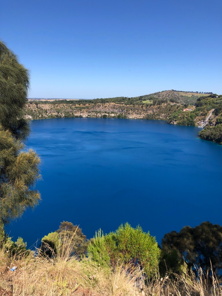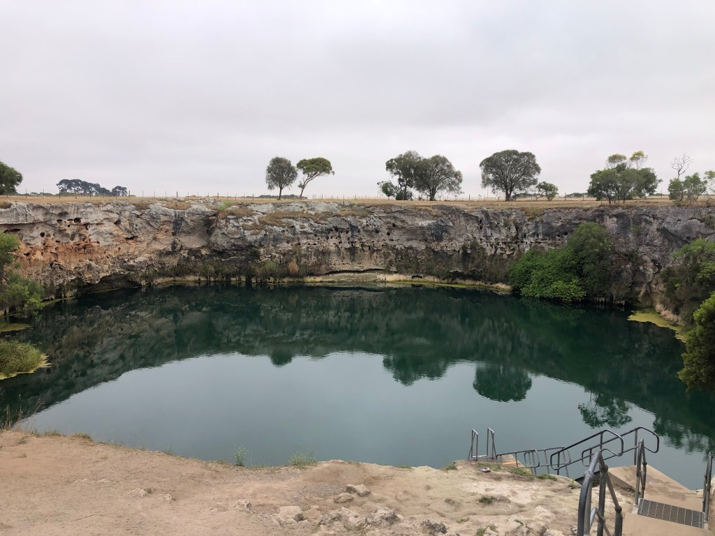 Mount Gambier is the largest city in South Australia outside the capital city of Adelaide with a population close to 30,000 so it has a lot to offer. It’s major tourist attraction is probably the Blue Lake. Mount Gambier is the result of 4 volcanic eruptions eons ago. The Blue Lake was created from the final eruption. It is filled to a depth of 70 metres of crystal clear water sitting on a limestone base. The underground water in the area eventually makes its way here or down to the sea about 30km south.