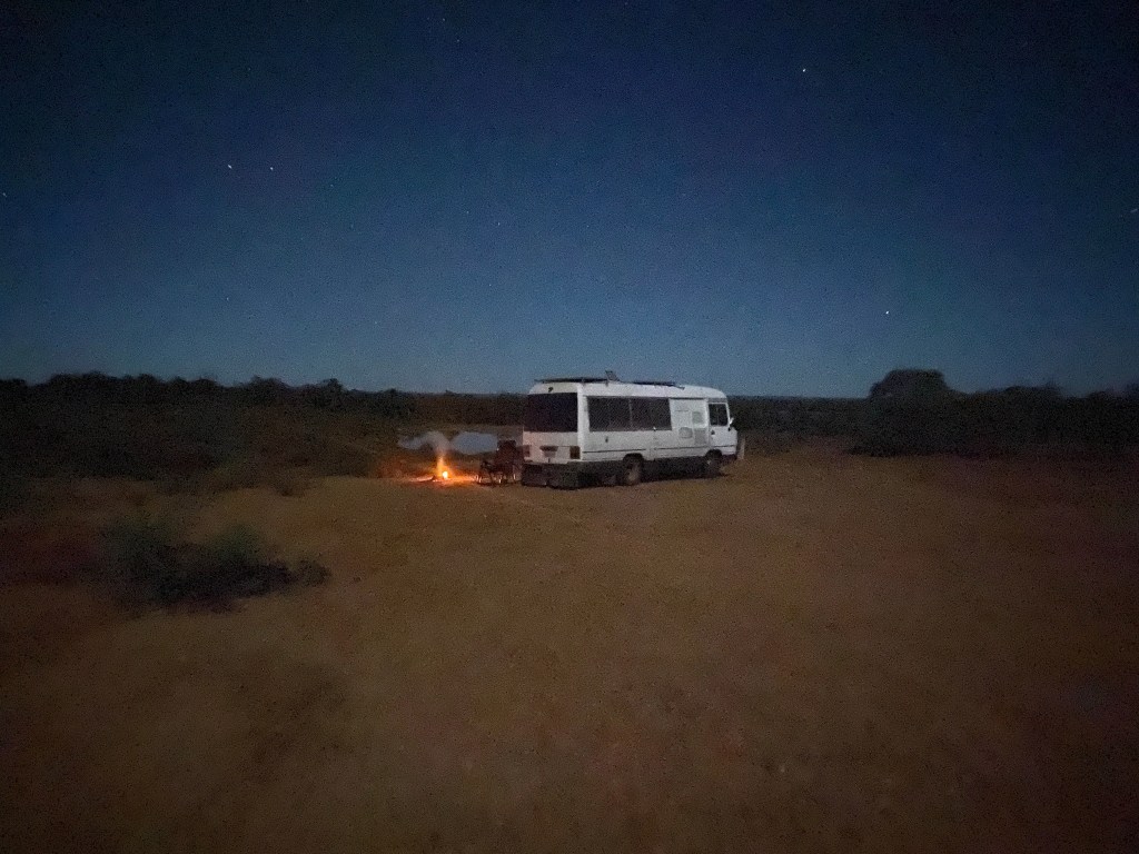I found a camp area beside the road but there was a dirt road “No Through Road” off to the side so decided to go down there looking to see if we could get close to the Mackenzie River, finally found a top spot which looked a bit like an old quarry overlooking a couple of dams. It was an idyllic stop and quite secluded apart from the farms along the roadside. I knew the dam would be on private property but thought the quarry would be “public space”. Anyways we set up camp and with plenty of wood about we had a fire each night. We saw the adjacent farmer coming and going each day on his quad. The second evening he came up to us. He was friendly enough but said we were on his land and we could stay that night but could we leave the next morning. He said he didn’t mind campers but his house was just over the hill at the back of us (out of view) but as his wife was home alone most of the day she was a bit unnerved with strangers around. He was really on fire a chat and was very kind to let us stay the extra night. I scrawled a “Thank You Scott” in the dirt when we left the next morning.